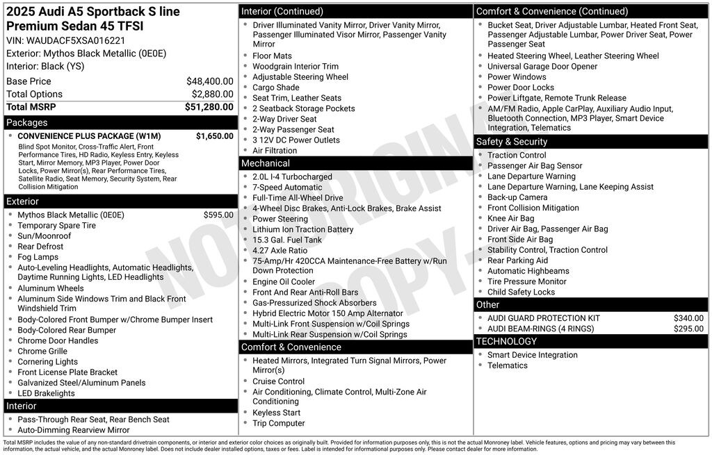 - Smart device integration: Audi smartphone interface w/wireless Apple CarPlay