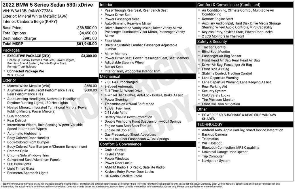⢠M Sport Package: Aluminum Rhombicle Smoke Grey Trim, Shadowline Exterior Trim, 19" M Y-Spoke Bicolor Jet Black Wheels, M Steering Wheel, M Sport Suspension, Aerodynamic Kit