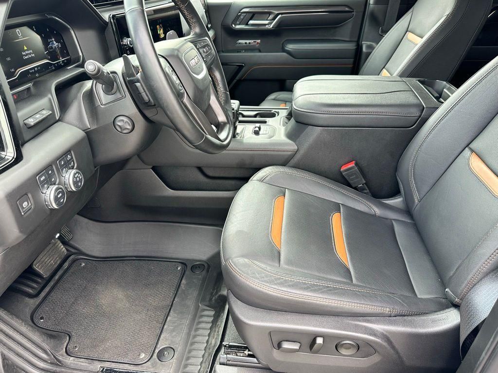 Step inside the Sierra 1500 AT4 and you'll be surrounded by a wealth of premium amenities, including a Bose 7-speaker sound system, wireless charging, and a multicolor 15" head-up display. The heated and ventilated front seats, heated rear seats, and power-adjustable driver's seat with memory function provide unrivaled comfort, while the Rear Camera Mirror and HD Surround Vision offer enhanced visibility and safety.