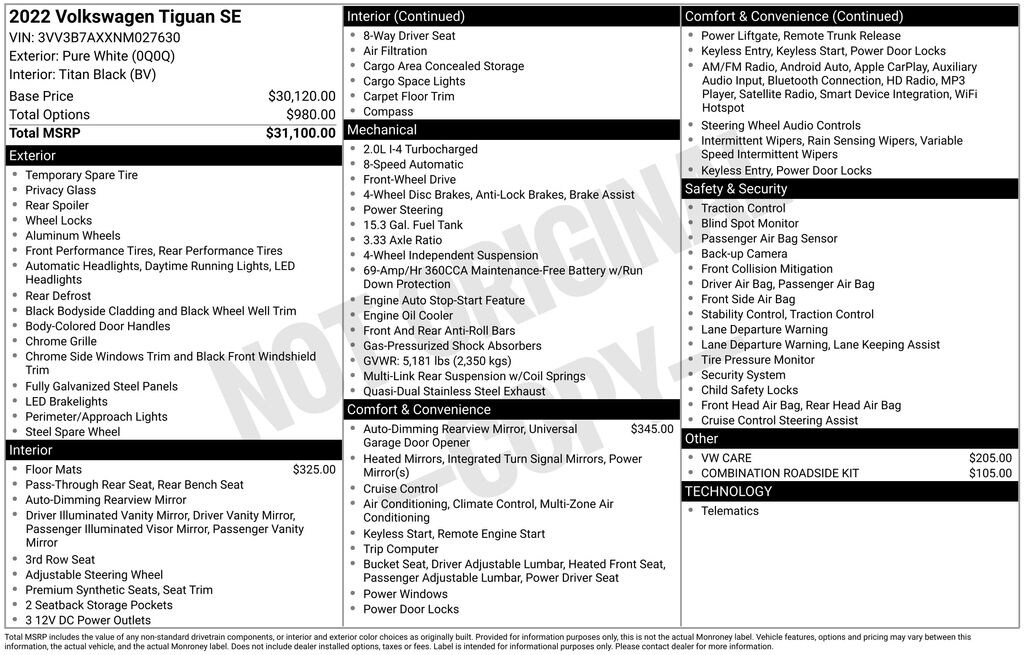 Carlock Volkswagen of Mobile is very proud to offer this terrific 2022 Volkswagen Tiguan in Pure White This vehicle has passed our comprehensive inspection and comes with the following features;